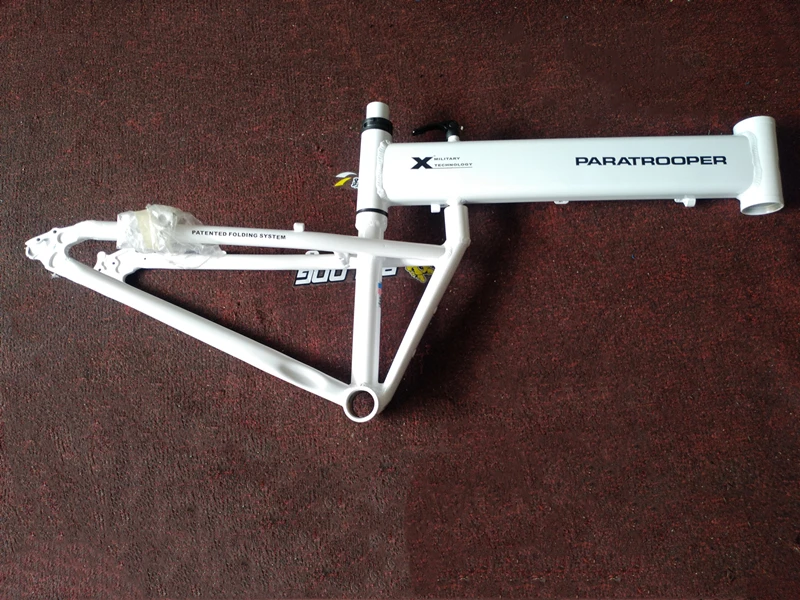 Ddescription Name: MTB folding frame Material: Aluminum alloy 6061 Size: 26x 17/18 inch Seat tube diameter : 27.2 mm Bowl group diameter : 44 mm Weight: 2 Kg Brakes: oil dish / cable disc Compatible with: 7,8,9,10 -speed mountain bike shifting system Color: White / Black Advantages: excellent workmanship, folding design, easy to carry BuyersFeedback: