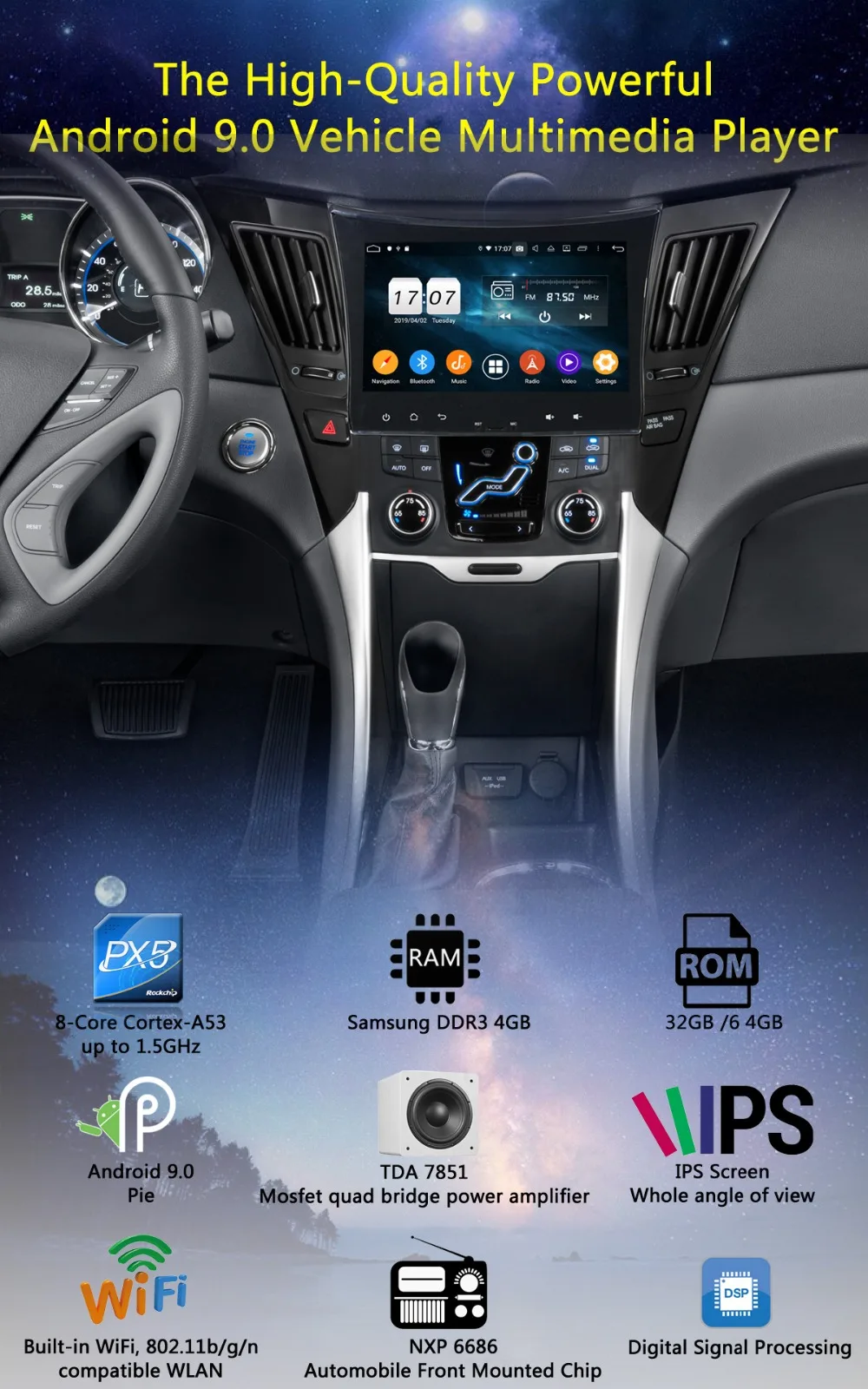 Octa Core 1024*600 Android 8.1 Car DVD GPS Navigation Player Deckless Car Stereo For Hyundai Sonata 2011-13 Radio Headunit WIFI
