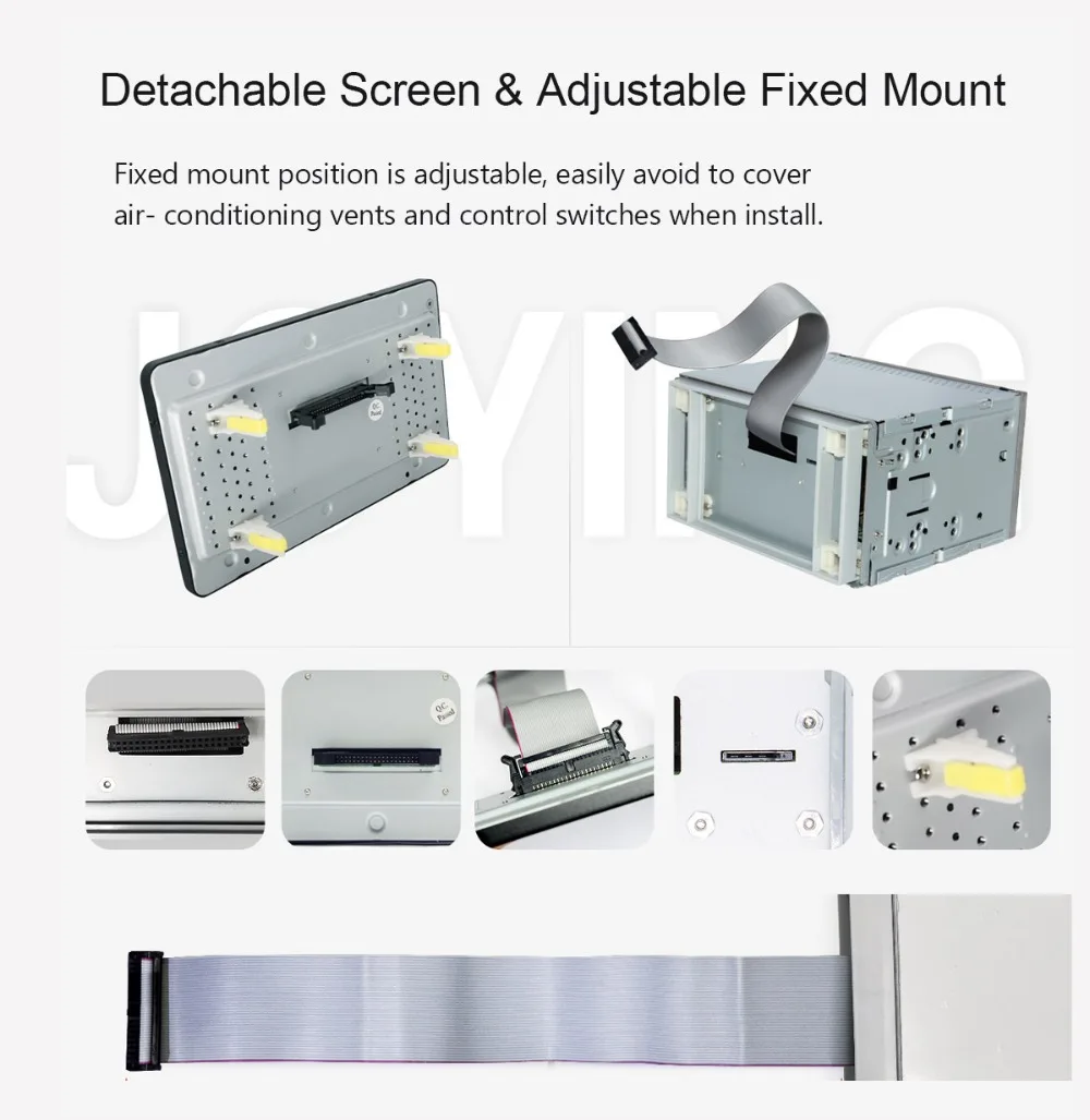 There are several models on this link, you can choice the modelyou like, and they are same series products, all the functions is the same, only the size is different. if you didn't know which one fit your car, please feel free to contact us before you buy it. CPU: Intel X86-OCTA-CORE 1.8GHZ SC9853 4+64 GB Amplifier Chip: TDA7851,The Radio Chip:NXP6686. 1) Detachable Screen & Adjustatble Fixed Mount Fixed mount position is adjustable, easily avoid to cover air-conditioning vents and control switches when install. 2) Built-in 4G Modem *Inserting 4G SIM card to the radio for Internet directly. 3) ZLINK *Support Wireless Carplay function Connect via wireless Bluetooth or Wired USB cable, Zlink makes it easier to make calls, use maps, listen to music and access message with voice commands. * Support Android auto function Connect via usb cable, Android auto makes it easier to use apps that you love from your phone with the Google Assistant. 4) Built-in DSP * 16-band EQ, With independent front and rear settings. *Full q-factor fine tuning for each hz. *Bass-boost front and rear fully adjustable on the hz and level. *High-pass filters front and rear fully adjustable frequency and level. *Sub output level and low pass frequency adjustment. 5) Fast Boot 30-40s in the first time boot up. In next every time boot up, once put in car key, it will start tp quickly. and enter into user interface in 2S, if you do not need fast boot fucntion, you can turn off sleep mode in settings. 6) Support GPS Navigation , Bluetooth , Picture -in -picture,Split-screen Multitasking, Steering Wheel Control. 7) The Model comes with SPDIF digital audio output. *For ultimate sound quality, you may connect your external amplifier /DSP to the SPDIF digital output directly; *If your external amplifier / DSP doesn't come with SPDIF input, you will need to connect the amplifier / DSP via FL/FR out & RL/RR out. Notice : This head unit has no DVD slot .it don't support dvd .and it don't support video out. Note:For Joying head unit, do not support like below: iPod, original car GPS antenna, original car back up rear camera, original car bluetooth, original car USB as well original car Microphone. Please take care do not upgrade ROM from Malaysk on forum xda-developers or upgrade others brand app which not provide from Joying. Because this kind of action will broken head unit. If you update it by self, you will face the issues like can't update yourmarshmallowanymore, and you will lost the service of head unit warranty About shipping 1. If there is customs taxes,buyers need to pay for it.If you have special request,please contact us when you make order. 2,Import duties, taxes and charges are not included in the item price or shipping charges. 3,Remote area fee excluded, for addresses listed in the Remote areas on DHL/Fedex website, will be charged an extra US$30 4,Usually we use DHL and EMS.if you can choose DHL we suggest you use it. if you prefer other express, please contact with us in time. Please give us your (mobile) phone number during checkout for shipping use, this is very important. All parcels will be sent within 1-3days usually upon receipt of payment (except weekend and festival) Warranty and return All our items are tested 4 times to ensure working properly before shipping and come with a 12-month Manufacture Warranty. The warranty will not cover damage from improper installation, accident, misuse, abuse, improper wiring, and incorrect voltage operating the unit against the instructions in the owner's manual. The validtime for replacement is 14 days from the date of receiving the item, if this item has any problem when arriving, please feel free to contact us and please note keep it in original condition. It is buyer's responsibility to pay for return postage and ship the item back to us. Please inform us of the reason of your order revocation and send us a clear picture or a video as a proof. Items returned to us without a report will not be processed. Installation: Please just install this unit by professional technician, also ask them to test it first before installation Before our sending, we have checked all our items carefully, if you received a broken defective item, just keep the original package and make a photo to us within 3 days Note: Installation Fees are out of our control, they must be paid by Buyer. The price includes no VAT and customs tax, if any fees happen, buyer should pay it by himself Buyer is responsible for shipping costs incurred shipping products back Feedback: We have set our system automatic for the feedback, when receiving your feedback; it will give you the same one automatic It'll be appreciated if you can leave us a positive feedback with 5 Star, it's an encouragement to us, and we'll do better.if you don't leave us negative feedback and open dispute .we will provide update firmware forever .Do not hesitate to contact us anytime before and after your purchase; we are committed to your 100% customer satisfaction.